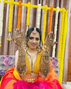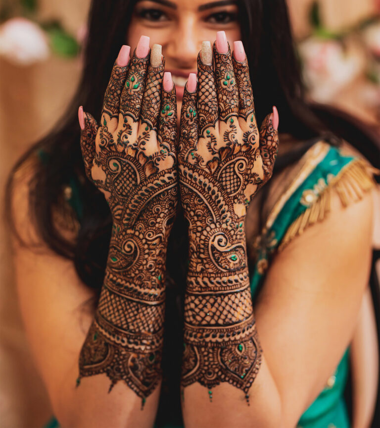 Bridal mehndi design is detailed and intricate, created especially for a bride’s special day.
